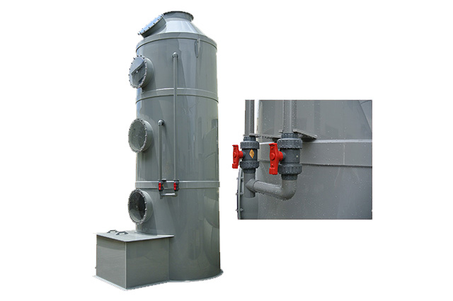 洗滌塔系統(tǒng)的風(fēng)機(jī)組將收集到的廢氣吸入酸霧PPs阻燃洗滌塔內(nèi),流經(jīng)填料層段(氣/液接觸反應(yīng)介質(zhì)),讓廢氣與填充物表面流動(dòng)的藥液(洗滌液)充分接觸,以吸附廢氣中所含的酸性或堿性污物,廢氣經(jīng)過洗滌后,達(dá)標(biāo)排放。
