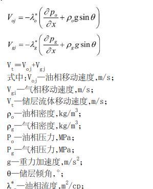 基于達(dá)西定律計(jì)算傾斜儲層中油相與氣相的運(yùn)移速度的公式如下:
