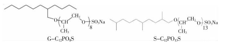 圖1延展型表面活性劑G-C12PO8S和S-C12PO13S的結(jié)構(gòu)式