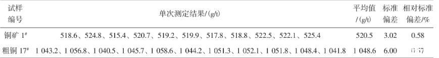 按試驗(yàn)方法,用不同含量的銅物料樣品進(jìn)行分析,并與其它測(cè)定銀元素方法的分析結(jié)果對(duì)照,結(jié)果見(jiàn)表4。