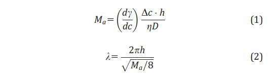 為了量化溶質(zhì) Marangoni 效應,25,26,30,31 我們估計 馬蘭戈尼數(shù) (Ma) 和馬蘭戈尼波長 (k).32