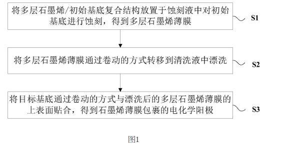 本實(shí)施例提供了一種基于石墨烯薄膜包裹的電化學(xué)陽(yáng)極大規(guī)模制備方法,如圖1所示,包括以下步驟: