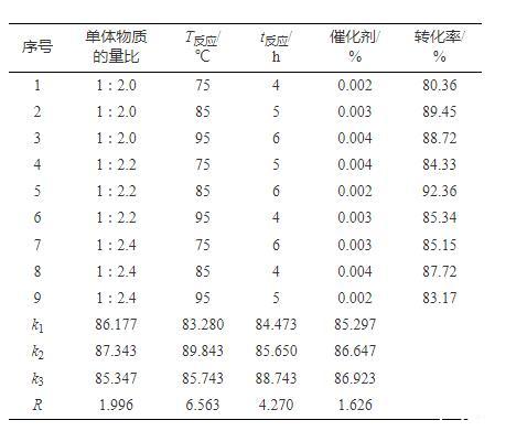 表1正交實驗優(yōu)化反應條件