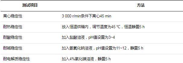 氨基改性硅油柔軟劑根據(jù)紡織物處理需要的不同,接觸到酸堿度、溫度等條件都不同,而無論是什么樣的條件,都要求氨基改性硅油柔軟劑具有極強的穩(wěn)定性,不能出現(xiàn)水油分離現(xiàn)象。測試項目如表3所示。