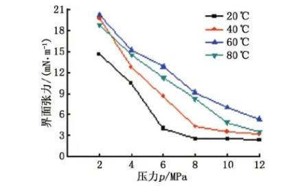 不同溫度和壓力對AOT穩(wěn)定CO2乳液的界面張力影響(二)