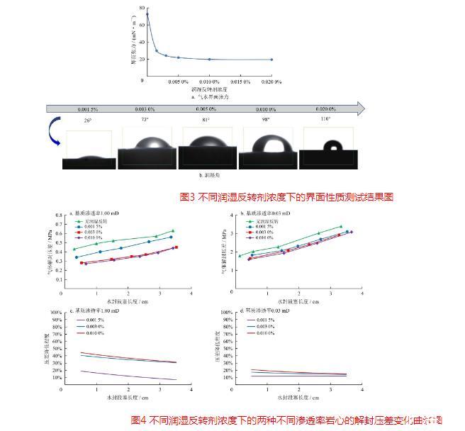 3.1.3.1不同潤濕反轉(zhuǎn)劑濃度下的氣水界面張力與潤濕性變化