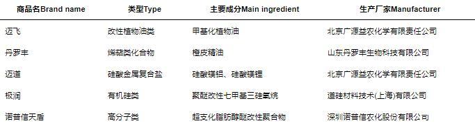 在病蟲(chóng)害防治過(guò)程中常通過(guò)加入農(nóng)藥助劑改變藥液在靶標(biāo)葉片上的潤(rùn)濕性和持留性來(lái)提高農(nóng)藥制劑的防治效果。藥液的潤(rùn)濕持留能力與藥液的表面張力和其在靶標(biāo)葉片上的接觸角密切相關(guān)。液滴在葉片上的鋪展面積和蒸發(fā)時(shí)間決定了農(nóng)藥制劑的作用范圍和吸收效果。研究表明,藥液中加入助劑可以降低藥液的表面張力和藥液在植物葉片或蟲(chóng)體表面上的接觸角,提高藥液的潤(rùn)濕、鋪展和附著性,并降低農(nóng)藥?kù)F滴飄移的風(fēng)險(xiǎn)。隨著農(nóng)藥助劑產(chǎn)品的應(yīng)用,市場(chǎng)上銷售的農(nóng)藥助劑產(chǎn)品多種多樣,成分復(fù)雜,農(nóng)藥助劑的種類和濃度對(duì)藥液在植物葉片上的潤(rùn)濕鋪展性影響較大。研究發(fā)現(xiàn),礦物油類助劑和有機(jī)硅類助劑能有效提高氟啶蟲(chóng)胺腈藥液在蘋(píng)果葉片上的潤(rùn)濕性;改性植物油類助劑邁飛和Agrospred 910能顯著改變氯蟲(chóng)苯甲酰胺藥液的理化性質(zhì),提高藥液在玉米葉片上的潤(rùn)濕性;不同種類助劑對(duì)藥液在作物葉片上的潤(rùn)濕鋪展效果有顯著差異。