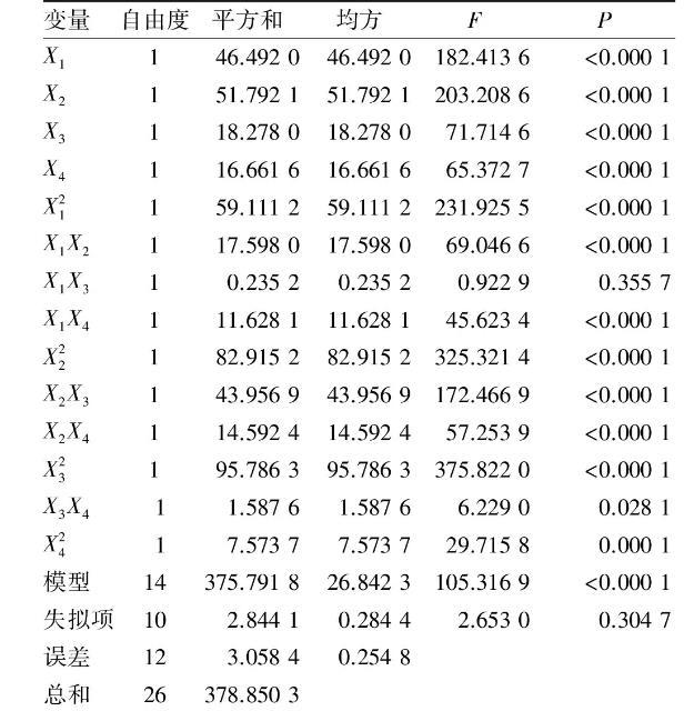 表2響應面試驗方案及結果