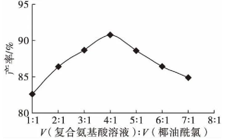 2.1.1復合氨基酸溶液與椰油酰氯體積比對產(chǎn)率的影響