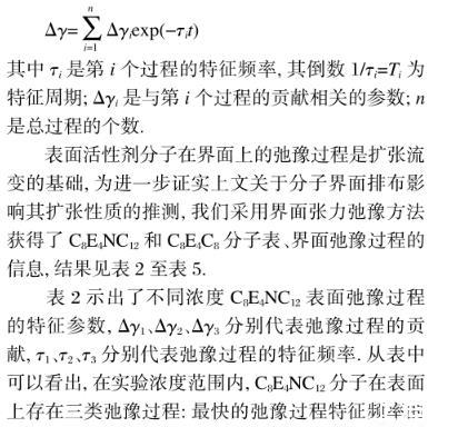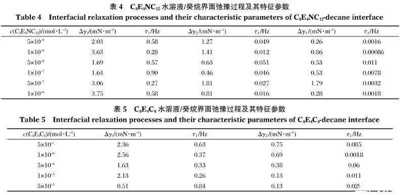表5 C8E4C8水溶液/癸烷界面弛豫過程及其特征參數(shù)