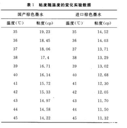 溫度對(duì)陶瓷墨水的容重、表面張力、粘度參數(shù)的影響
