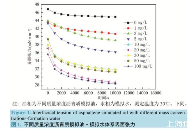 圖1.不同質(zhì)量濃度瀝青質(zhì)模擬油–模擬水體系界面張力