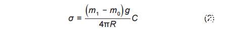 式中,R為拉筒底環(huán)平均半徑,m;m_1為拉筒脫離熔鹽液面時電子天平的最大讀數(shù),g;m_0為拉筒質量,g;g為重力加速度,取9.81 m/s2;C為儀器系數(shù)。