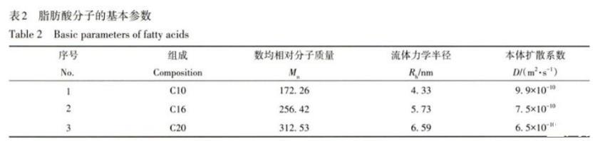 表2脂肪酸分子的基本參數(shù)
