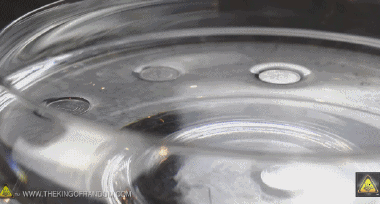 疏水的材料甚至能被水面托住——如果表面的“膜”沒(méi)有被破壞的話。錄制者:Grant Thompson-"The King of Random"