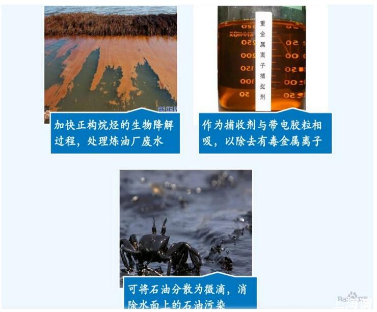 目前它比較廣泛的應(yīng)用于石油工業(yè)、綠色農(nóng)業(yè)和生態(tài)環(huán)境方面,此外在食品行業(yè)、化妝品、醫(yī)療方面也有較大的應(yīng)用潛力。