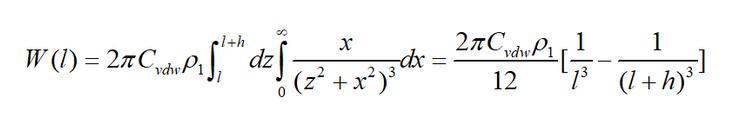 始終ρ1為無限大平板物體單位體積的分子數(shù)(分子密度);h為平板的厚度;l為單個(gè)分子到平板的最近距離。