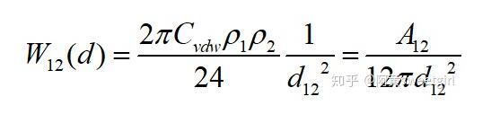 同樣,若取l為兩相界面處分子間的距離d12,且兩半無限體為兩種不同的物質(zhì)時(shí),則互作用勢(shì)變?yōu)?