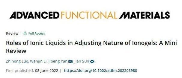 北京理工大學(xué)生命學(xué)院綠色生物制造課題組在國際頂級期刊《Advanced Functional Materials》(影響因子18.808)發(fā)表題為《Roles of Ionic Liquids in Adjusting Nature of Ionogels:A Mini Review》的綜述,文章綜述了離子液體在調(diào)控離子凝膠的結(jié)構(gòu)和性能方面發(fā)揮的作用。該文章通訊作者為閻繼鵬副教授和孫劍教授,第一作者為北京理工大學(xué)生命學(xué)院2020級碩士生羅志鴻。